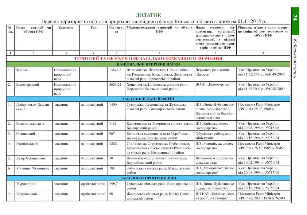 Виготовлено електронну інтерактивну версію Атлас, що дозволяє ідентифікувати об’єкти та території ПЗФ Київської області загальнодержавного та місцевого значення: