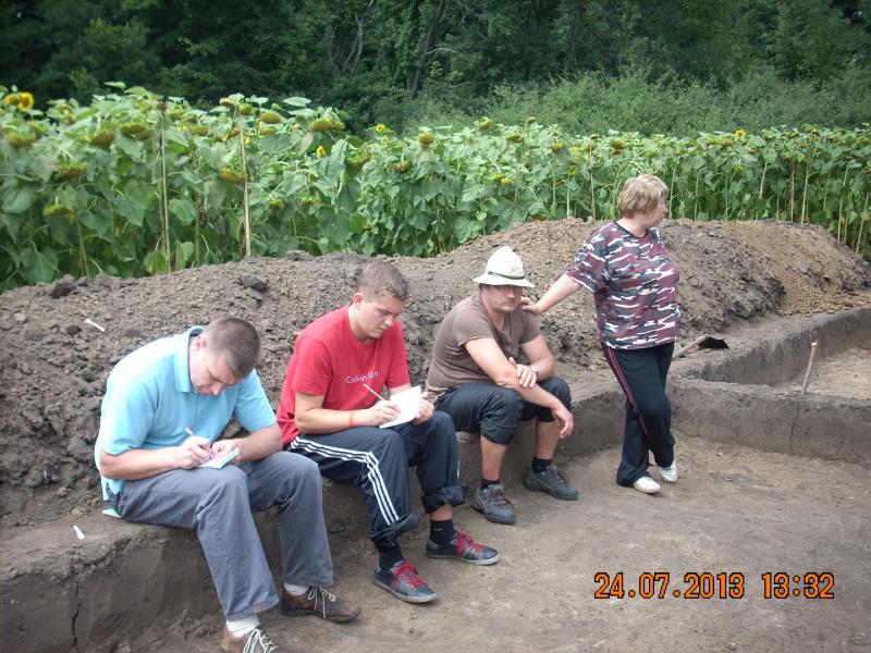 | Співпраця з археологоми в межах Більського городища (Полтавська обл.). 2013 р. | Палеогеографічні дослідження зольника скіфського часу. Більське городище. 2013 р. |